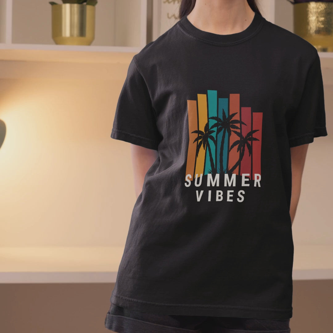 This soft cotton tee pairs endless versatility with a vibrant ‘Summer Vibes’ print—perfect for beach days, festivals, or just dreaming of warmer adventures. Lightweight comfort, maximum seasonal energy!
